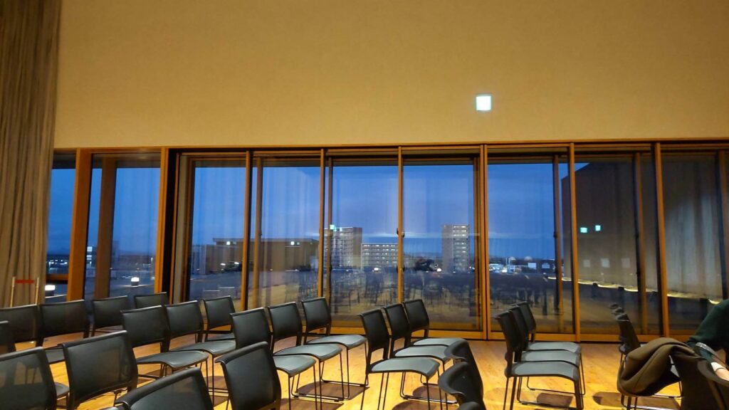 水戸市民会館4階の小ホール。夜景が綺麗です。